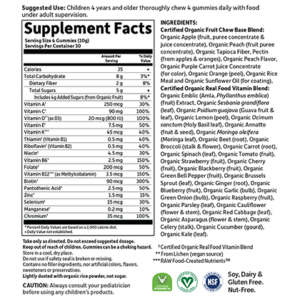 The mykind Organics line of gummies is a true health crusader, ditching the conventional vitamin gummy course by steering clear of processed sugars and syrups, artificial colors and flavorings, animal products, and GMOs. With our clean gummy technology, there are no “candy” ingredients, no pig gelatin or corn starch. You can rest assured you are receiving a true, whole food vitamin fruit chew that not only is good for you, but is great-tasting! They are Certified USDA Organic, Non-GMO Project Verified, Certified Vegan, Certified Gluten Free and Kosher.